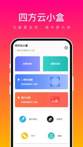 四方云小盒是一款多功能工具箱应用,提供了丰富的功能选项,满足用户的多样化需求。它是一个集合了qq工具箱和手机工具箱的综合性应用,拥有图像处理、图像压缩、指南针、动植物扫描识别等多种实用功能。 四方云小盒可以帮助用户进行图片处理和压缩。