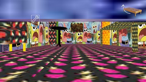 1、玩家被锁在一个阴森恐怖的房间里,需要寻找线索和道具,躲避邪恶的海绵奶奶,最终逃脱密室。