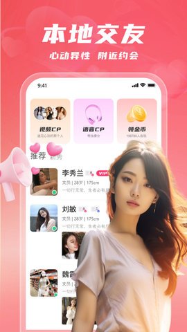 同城陌欢是一款交友应用,提供语音交友和视频面对面交流的功能,让用户能够更直接地与对方交流,共享有趣的内容。这款软件不仅提供出色的交友功能,还为用户提供了十分便利的交友畅聊方式,让用户能够轻松地找到合适的交友对象,享受不一样的畅聊体验,获得更好的交友乐趣。 同城陌欢提供了提交资料并等待推荐合适对象的平台服务,用户只需提供自己的相关信息,就能够等待系统推荐适合的交友对象。
