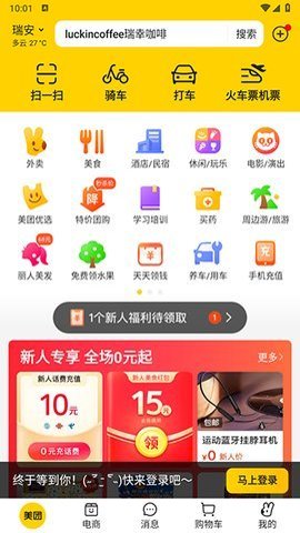 1、用户可以享受到美团打车的优惠,预订机票和汽车票,免押金骑行美团单车和电单车。