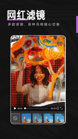 3、为了让视频更具个性化和时尚感,该app还提供了各种网红滤镜和风格切换功能。