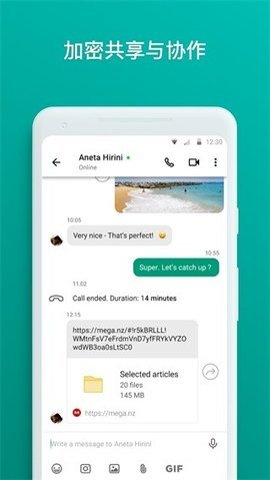 3、Mega云网盘还提供了自带的安全聊天功能,可以进行端到端的用户加密通讯,包括全方位隐私的视频和音频通话。