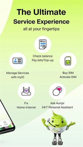 myais是一款功能丰富的生活服务应用。它提供了多种方便的功能,包括余额查询、支付账单、充值等。它还可以与Aunjai进行聊天,满足用户的各种服务需求,而且这项服务还是全天候提供的。