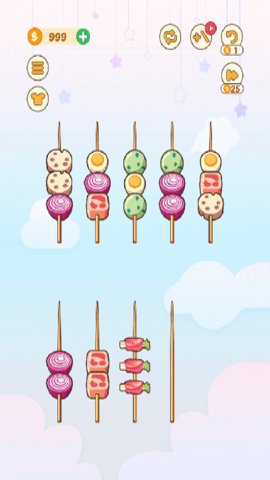 4、游戏拥有海量的关卡等待玩家挑战,玩家需要细心研究每个竹签上的食物,然后进行移动。