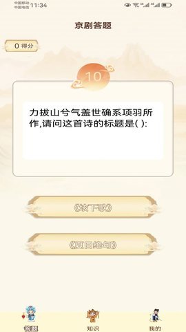 2、除了提供丰富的戏曲知识外,欢剧一堂App还提供了答题功能,用户可以通过答题来检验自己对戏曲的了解程度。