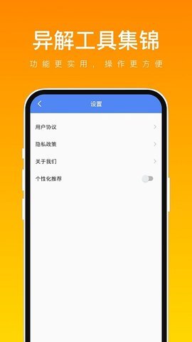 1、异解工具集锦是一款功能丰富、实用便捷的工具箱应用。