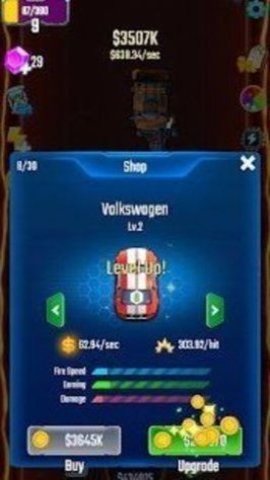 2、通过加速游戏节奏和销毁不需要的电瓶车,每辆车能发出的攻击弹道都不太一样。