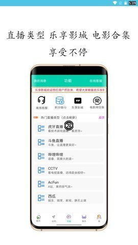 2、在乐享影城中,观众可以使用多种功能进行直播,大量的电影和电视节目可以免费播放和观看。
