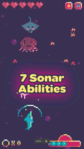 2、声呐粉碎是一款充满挑战和乐趣的游戏,玩家需要不断探索海洋世界,收集戒指和能量,升级属性,利用声呐系统打败障碍和敌人。