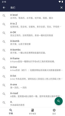 智慧英汉字典是一款非常实用的学习软件应用。它具备双语搜寻字汇的功能,您可以用中文或英文进行单字搜寻,而我们将为您提供详细的中文与英文解释。从而无论您是想要查询中文释义还是英文释义,都能够轻松地找到所需信息。