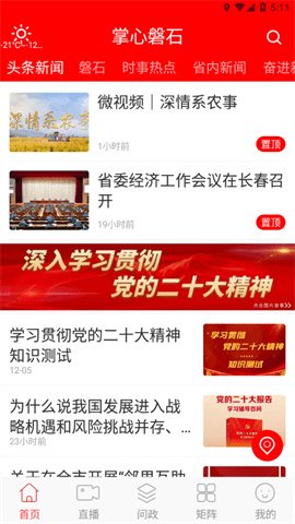3、掌心磐石是一款功能丰富的新闻资讯应用,不仅提供了磐石当地电视台的视频内容,还包括了各种生活资讯、文明实践活动、省内重要新闻等内容。