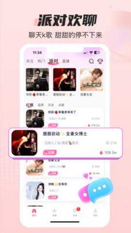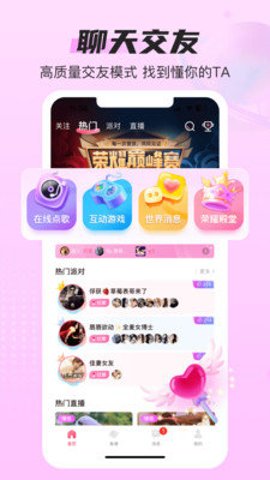 3、在声音广场中,你可以与声优级别的小哥哥和小姐姐一对多或一对一地进行连麦,一起唱歌、开黑、聊天等等。