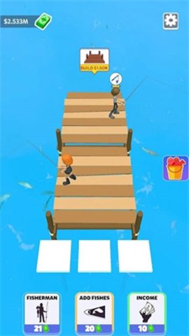 1、除了合并鱼类,游戏还融入了有趣的经营和养成元素,玩家可以招募更多的渔夫,共同管理渔场,钓到更多的小鱼。