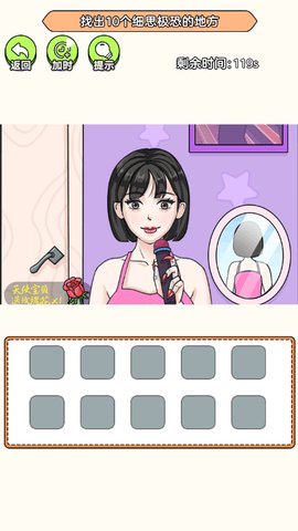 3、游戏还拥有多种不同剧情的找茬关卡,玩家需要帮助老妹度过难关,没有你的帮助,她将无法成功。