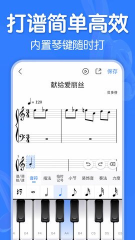 2、来音制谱app是专为移动用户设计的乐谱编辑软件,它内置了虚拟钢琴键盘,用户可以通过软件轻松地制作乐谱,操作非常简单。