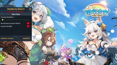 1、雨伞少女内置菜单版是一款放置类型的战斗游戏,玩家可以选择多位美少女组合成自己的战队,通过养成升级提升她们的技能和属性,帮助自己对付蜂拥而来的怪物。