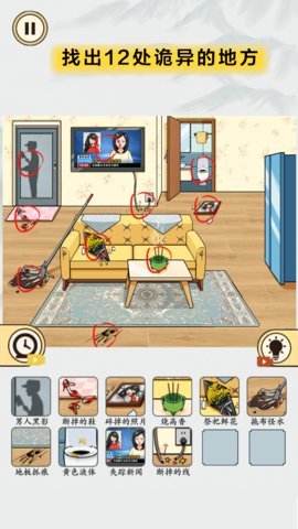 1、微恐找找茬是一款恐怖灵异题材解谜游戏,玩家需要擦亮双眼,开动脑筋,找出图片中诡异的地方并标记出来才能通关。