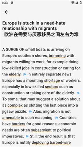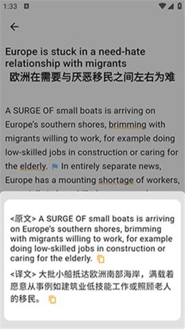 3、它不仅可以帮助用户提高阅读理解能力,还提供了多种个性化设置和实用的功能,如语音翻译和逐词阅读模式。