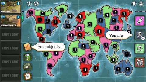 3、玩家需要部署军队,攻击敌人,并利用所有的战争策略来征服世界并取得胜利。