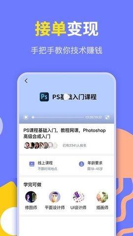 2、用户通过这款软件可以快速掌握Photoshop技能,实现自我提升或找到兼职机会。