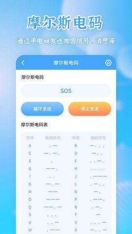 2、它提供了摩尔斯电码功能,用户可以通过手机发送和接收摩尔斯电码,方便进行紧急通讯。