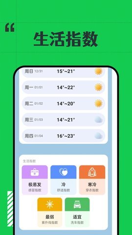 2、它提供了超长的天气预报信息和精准的生活指数,方便用户定制出行计划和选择合适的穿着。