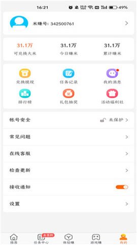 3、用户可以利用闲暇在线完成任务,轻松赚取大米。