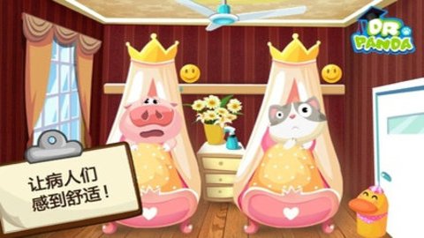 3、在熊猫博士的医院里充满了各种有趣的互动元素,滑动手指将垃圾扔进垃圾桶,播放一段音乐或者打开窗户透透气会让小动物们感到舒适愉快。