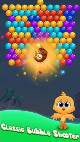 2、玩家需要通过屏幕顶部的发射器发射气泡,目标是射击屏幕上的气泡群以消除它们。