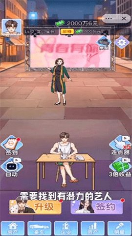 3、玩家将建立明星经济,从默默无闻开始,努力升级,最终签约各路明星进行转型逆袭。