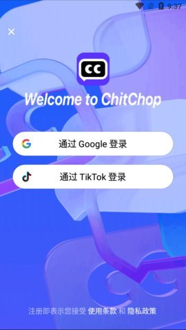 3、在进入ChitChop应用后,用户可以选择使用谷歌登录或TikTok登录。