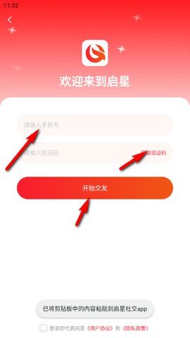 1、为了使用启星社交,用户需要在手机上下载并该应用,并打开它。