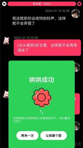 2、使用AI模型哄好虚拟女友/男友获得原谅软件不仅负责聊天任务,还能基于聊天内容给出数值系统的判定,帮助用户提升情商和对话能力。