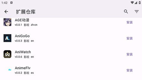 3、为了方便用户使用,MiruTV提供了官方扩展仓库,其中包含了各种视频源。