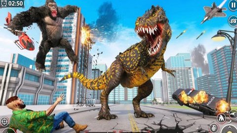1、玩家需要操作金刚来消灭恐龙并拯救城市的居民。