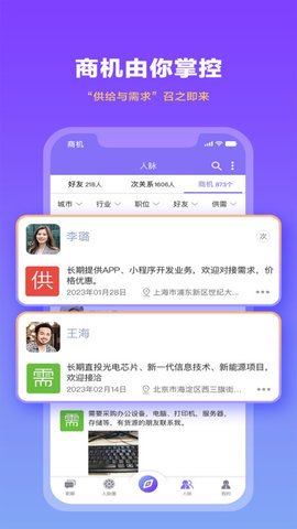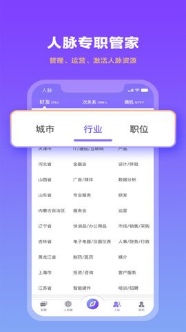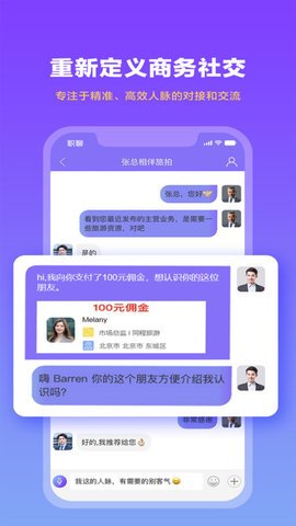 2、用户可以选择多种对话方式,与周围的职场人物连接,并在短内到同行业的各类人才。