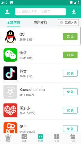 1、这个应用市场还将各类应用进行了详细分类,并为用户精选了一些应用与专题,以满足广大游戏爱好者的需求。
