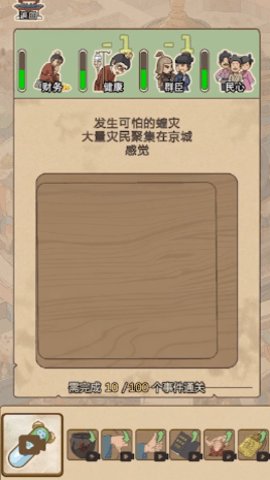 3、在游戏过程中,需要平衡四个数值:金融、健康、官员和人心。