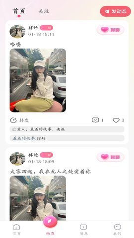 2、伴她app提供了多样的互动方式,使用户能够随时随地轻松展开社交,促使更多的人结识新朋友。