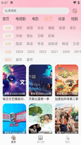 3、只需点击进入首页,你就能看到分类清晰的视频列表,快速筛选出自己想观看的视频。