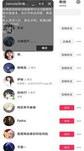 2、抖音自动回关软件能够自动扫描用户的粉丝列表,并根据用户设定的规则,自动回关关注自己的粉丝。