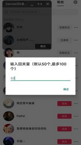 1、用户可以输入希望回关的数量,默认为50个,最多可设置为100个。