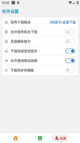 3、虎速下载是一款功能丰富的下载工具应用,不仅支持磁力链接搜索和下载,还支持视频解析下载、壁纸下载、表情包下载以及搜索功能。