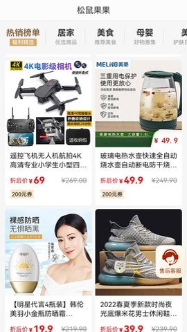 松鼠果果是一款购物app,提供手机购物平台和电子购物应用。在首页的精选区域,用户可以找到丰富的人气爆款产品,每日还有免费福利供应。用户在下订单时还可以获得回扣佣金,购买越多回扣越多。