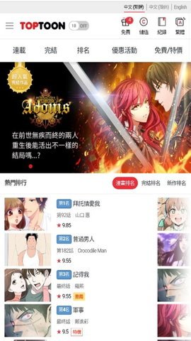 3、TOPTOON韩漫是一款功能丰富、资源丰富、操作简便的手机漫画阅读器和漫画平台。