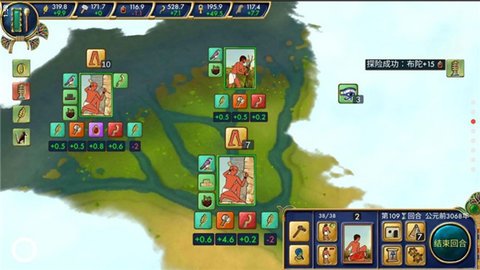 3、这回合的产出非常高,最低的也是经过BUFF后的3粮食。