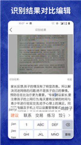 3、在文字识别的过程中,应用会自动识别倾斜角度,并进行自动矫正,确保文字识别的准确性。