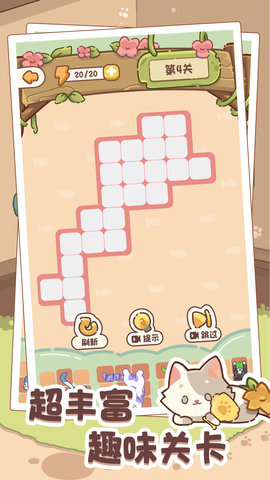 在喵了个喵中,玩家可以挑战多个精心设计的猫猫关卡,这些关卡的难度由简单到复杂逐渐递增,能够满足不同玩家的需求。通过解锁更多种类的猫咪,玩家可以打造自己的猫咪乐园,让自己沉浸在一个充满可爱猫咪的世界中。