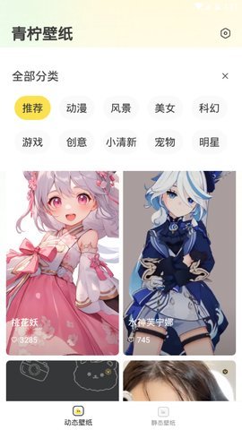 2、青柠壁纸提供了静态和动态壁纸,用户可以轻松通过分类进行过滤,找到自己喜欢的壁纸。