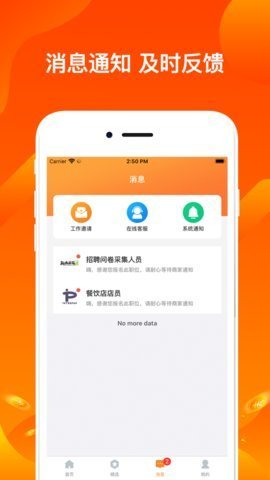 1、礼橙兼职还提供了在线咨询、投递简历、面试预约等功能,方便用户与招聘方进行沟通。